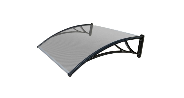 Описание товара: "Козырек Krovent из поликарбоната 1500х930х280 прозрачный (черный кронштейн)"